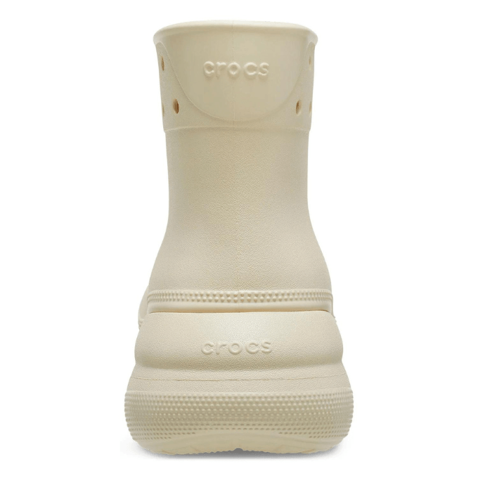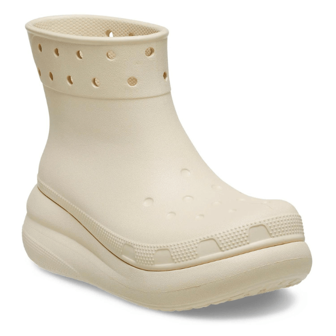 Esta bota "it" es funcional para la lluvia, pero versátil para cualquier ocasión, con un atractivo durante todo el año para quienes buscan un estilo atrevido, único e icónico. Parte de la nueva colección Crush, esta nueva bota dinámica presenta un estilo moderno, mayor altura y una altura de caña adecuada a las tendencias y fácil de usar. Además, los orificios Jibbitz™ en el collar del eje facilitan la personalización. La comodidad Crocs que te encanta, en una bota impermeable, con una dosis extra de altura, actitud y estilo.