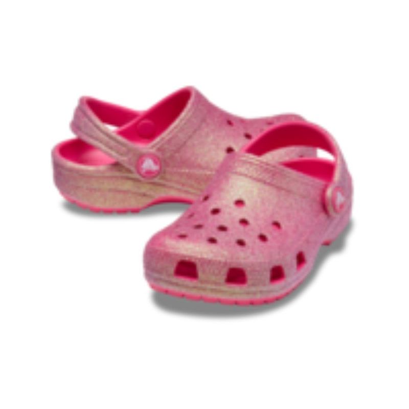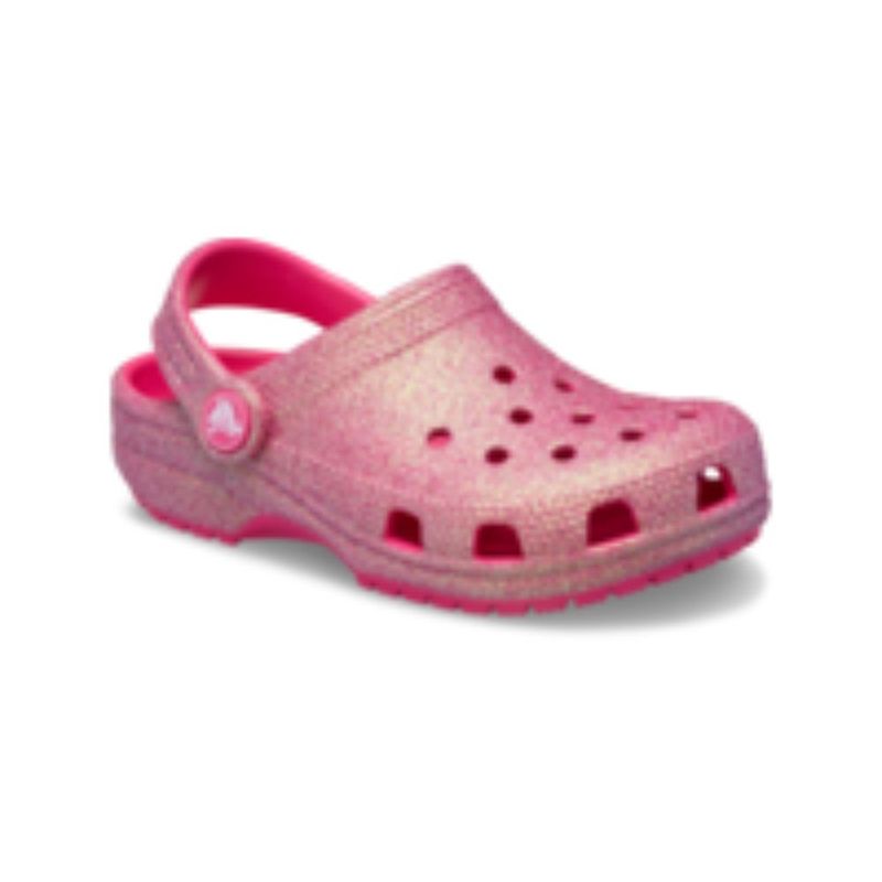 Un nuevo y divertido tratamiento de purpurina iridiscente le da un toque de estilo a esta versión del icónico zueco. La purpurina cambia de color al mirarla desde diferentes ángulos, lo que los hace aún más divertidos, y su construcción de espuma Croslite™ los hace ligeros y fáciles de usar. También disponibles para adultos y niños pequeños, para que puedas conseguir pares a juego y disfrutar de un momento familiar lleno de diversión. Confort y personalidad. ¡Brilla!