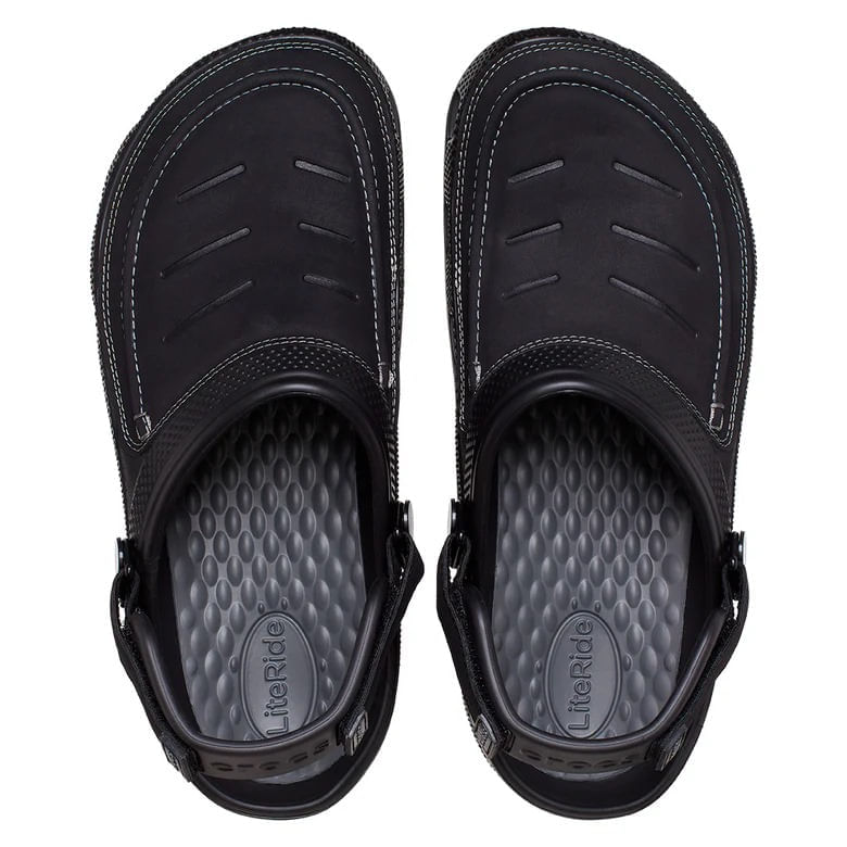 La parte superior de piel sintética con detalles cosidos añade una dosis de robustez al Yukon Vista II LiteRide™ Clog para hombre. Salga cómodamente con las punteras de base textil y siéntase elegante con este Crocs versátil y sencillo. Las suelas de espuma Croslite™ pueden resistir los elementos exteriores, mientras que las plantillas LiteRide™ brindan suavidad al hundirse alrededor de la fogata, en el sendero o de regreso a casa.